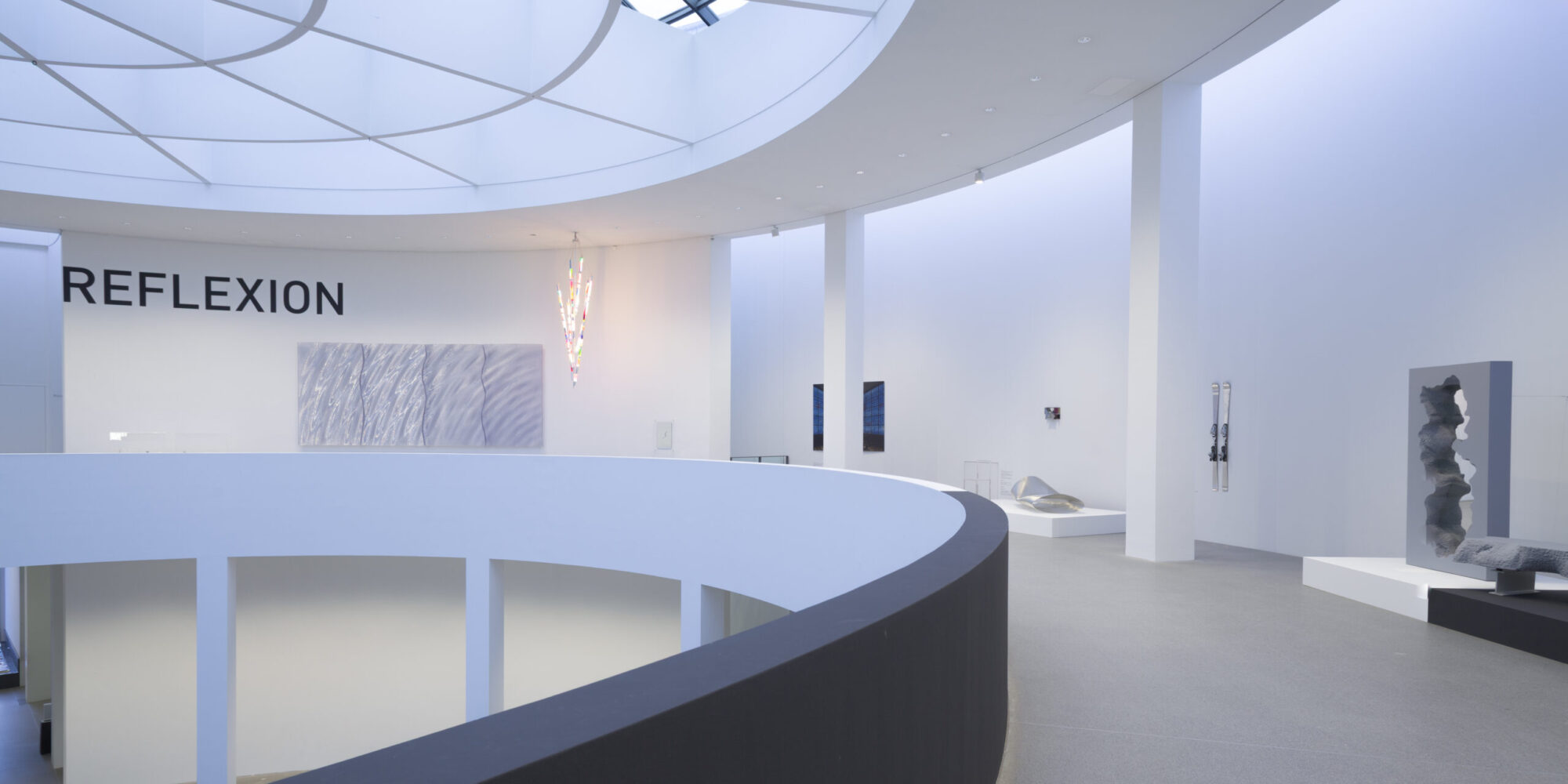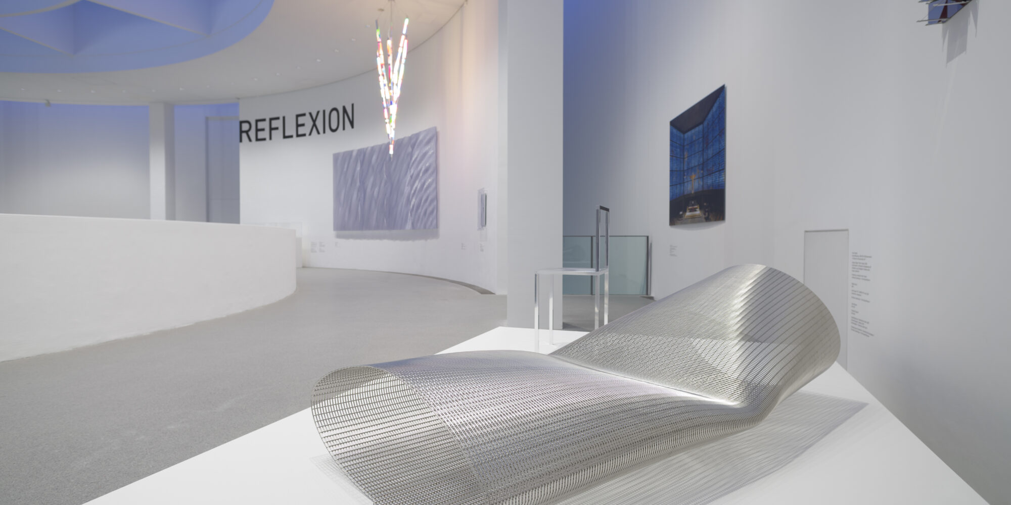Die zweite gemeinschaftlich kuratierte Ausstellung der vier Museen in der Pinakothek der Moderne widmet sich dem Thema der Reflexion. Der Begriff Reflexion wird dabei wörtlich und sinnbildlich verstanden, als optisches Phänomen, als Zeichen prüfenden Nachdenkens oder als Mittel künstlerischen Ausdrucks. Während die erste Jubiläums-Ausstellung die Gründungszeit der Neuen Sammlung, die Moderne der 1920/30er Jahre in den Fokus nahm, ist die Ausstellung „REFLEXION“ zeitlich weiter gefasst und führt bis zur Gegenwart. Unter den drei Leitgedanken Licht, Spiegel, Transparenz sind Objekte aus den Bereichen Bildende Kunst, Architektur, Graphik und Design gegenübergestellt.