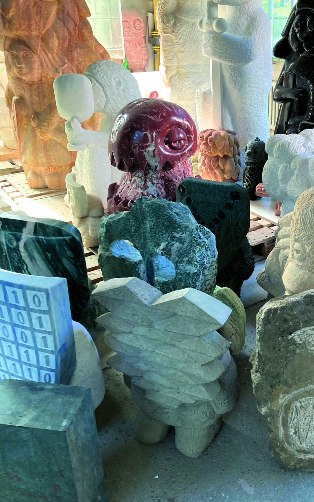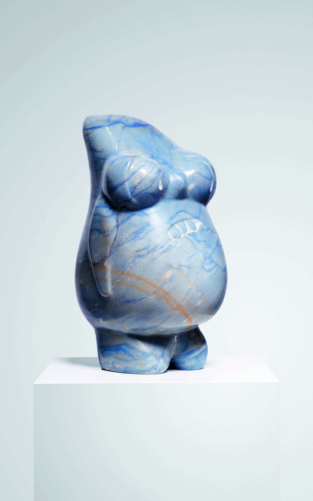 Unter seinen Händen wachsen sich rohe Gesteinsbrocken zu unbekannten sublimen Wesen aus. Schon bei der Vorauswahl der jeweiligen Steinart denkt er die für das Material spezifischen Bearbeitungsmethoden mit, um der allure der zukünftigen Skulptur gerecht zu werden. Mit der Kennerschaft des Steinmetzes kann sich sein Blick sprunghaft vom eher spröden, lehmfarbenen Elbsandstein hin zum harten und farbintensiven blauen Macauba- oder grünen Atlantis-Quarzit wenden, um unvermutet einen Block schneeweißen Statuario-Marmor, das Nonplusultra jedes klassischen Bildhauers, für seine nächste folie ins Auge zu fassen. Die Material-Melange seines Skulpturenparks beschwört ein phantastisches Panoptikum flirrender Lebensgeister herauf, denen er Leben einhaucht. Mit ihrem vielfach überdrehten Habitus erinnern sie an Picassos extraterrestrische Gaukler der blauen und rosa Periode. Wie sie bevölkern Rincks Statuen unsere Lebenswelt, ohne unsere Realität zu teilen. Das macht sie für uns so anziehend. Unvermittelt werden wir berührt von der Fremde ihres märchenhaften Habitats, das aus der Nähe, aber mit sicherem Abstand betrachtet, unserer menschlichen Natur mit ihren Sehnsüchten und Ängsten nicht unähnlich ist.