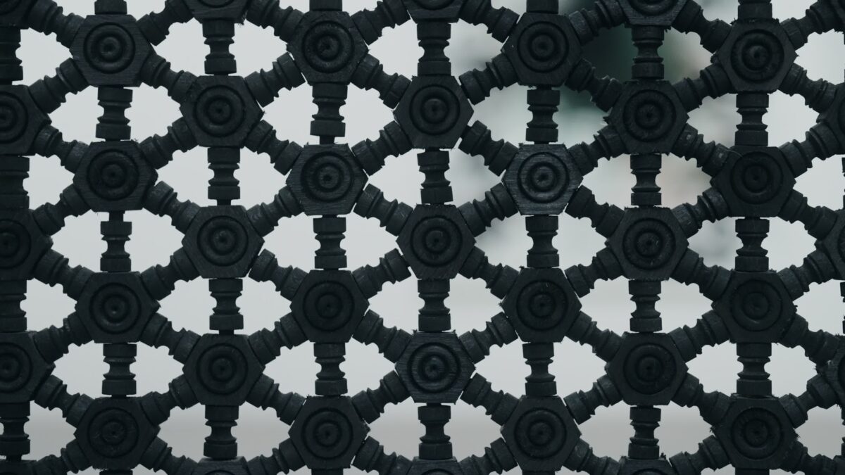 Susan Hefunas Arbeit mit dem Titel “Knowledge Is Sweeter Than Honey (Arabic)” ist Teil ihrer Mashrabiya-Serie. Die filigranen, ornamental gestalteten Holzfenstergitter prägen die traditionelle islamische Baukunst: Sie halten die Sonne ab, lassen die Luft zirkulieren und erzeugen ein Spiel aus Licht und Schatten. Zugleich markieren sie eine Grenze: zwischen Innen und Außen, Privatheit und Öffentlichkeit, Sichtbarkeit und Verborgenheit und spiegeln damit auch die traditionell geschlechtlich getrennten Bereiche der islamischen Gesellschaft wider.
